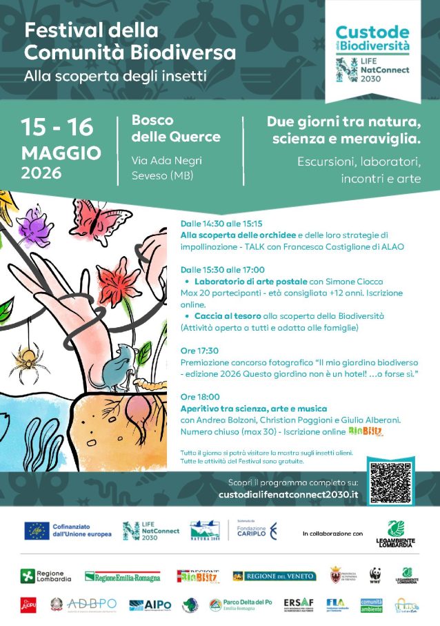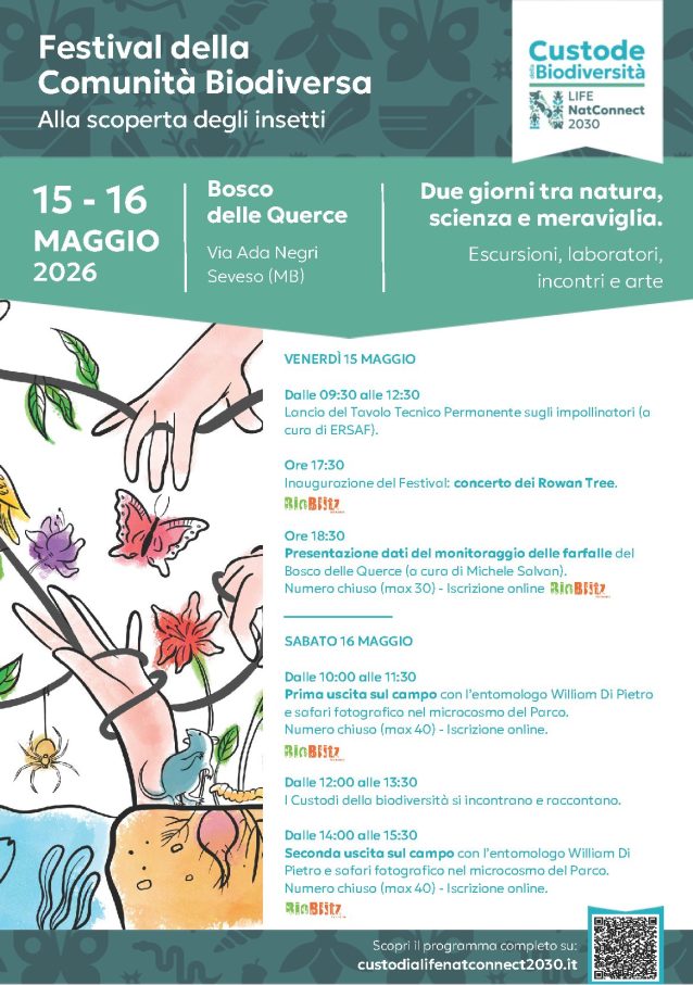 Scopri qui il programma completo: https://custodialifenatconnect2030.it/2026/04/10/festival-della-comunita-biodiversa-alla-scoperta-degli-insetti-15-16-maggio-2026-al-bosco-delle-querce-di-seveso-mb/“Con questo Festival vogliamo offrire a tutte e tutti l’occasione di avvicinarsi alla biodiversità partendo da ciò che spesso resta invisibile. Gli insetti sono fondamentali per la vita degli ecosistemi e raccontano molto del nostro rapporto con la natura. Il Bosco delle Querce è il luogo ideale per farlo: un territorio che da una ferita ambientale è diventato uno spazio vivo, dove oggi si può tornare a osservare, conoscere e prendersi cura della natura.”