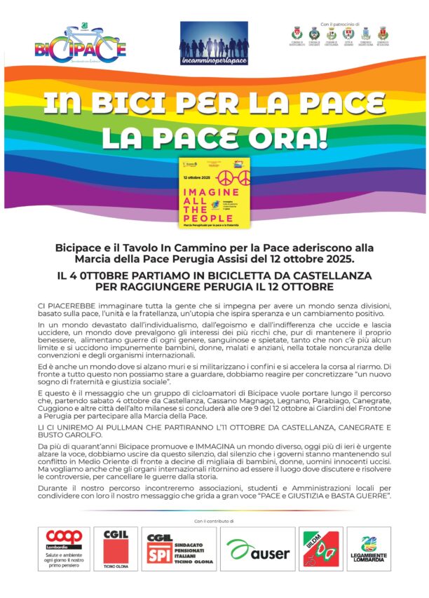 IN BICI PER LA PACE – LA PACE ORA! Corteo ciclistico da Castellanza (VA) a Perugia per la Marcia della