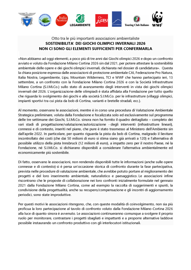 La mappatura degli impianti sciistici in difficoltà e un focus sulle Olimpiadi Milano Cortina tra ritardi e opere costose finanziate con un importo superiore a 30 milioni di euro