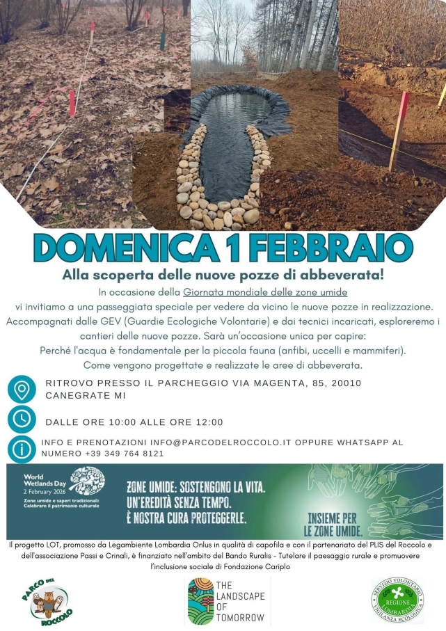Accompagnati dalle GEV (Guardie Ecologiche Volontarie) e dai tecnici incaricati, esploreremo i cantieri delle nuove pozze.
