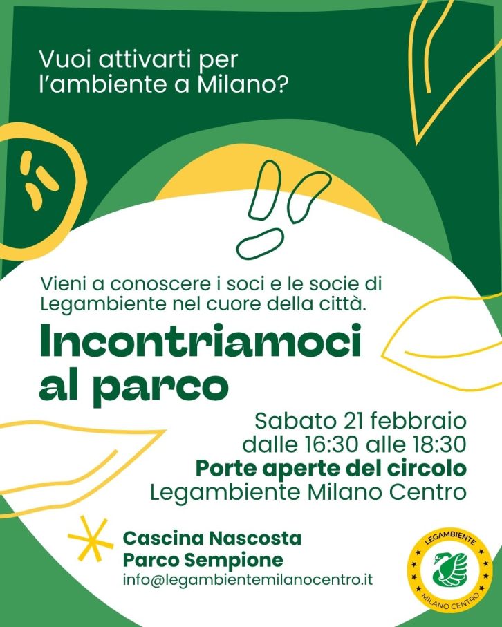 Incontriamoci al parco Vuoi attivarti per l’ambiente a Milano? Vieni a conoscere i soci e le socie di Legambiente nel cuore della città + Aggiungi a Google Calendar + iCal / Outlook export 00 giorni 00 ore 00 minuti 00 secondi Data 21 Feb 2026 Ora 16:30 - 18:30 Luogo Cascina Nascosta Viale Emilio Alemagna 14 Sito web https://cascinanascosta.org/ Organizzatore Legambiente Milano Centro Email info@legambientemilanocentro.it Sito web http://www.legambientemilanocentro.it Prossimo evento POLLINI – a cura di Zoë De Luca, episodio 10 Data Feb 25 2026 Ora 19:00 Condividi questo evento