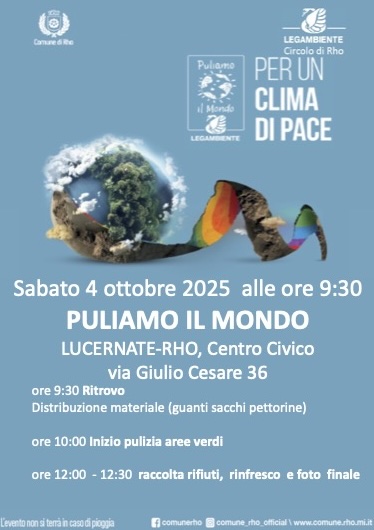 Puliamo il Mondo – Lucernate / Rho + Aggiungi a Google Calendar + iCal / Outlook export Data 04 Ott 2025 Expired! Ora 09:30 - 12:30 Luogo Centro Civico Via Giulio Cesare, 36, Rho Organizzatore Legambiente Rho Prossimo evento Innamorati della natura Data Feb 14 2026 Ora 14:30 - 17:30 Condividi questo evento