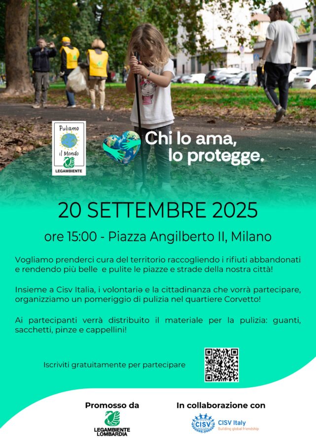 Nel pomeriggio del 20 settembre 2025, Legambiente LOmbardia insieme a CISV Italia organizzano Puliamo il Mondo con un’iniziativa nel quartiere di Corvetto, a Milano.