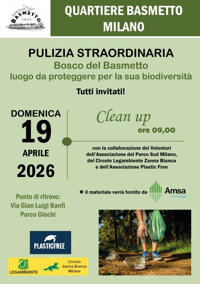 Con la collaborazione dei volontari dell’associazione del Parco Sud Milano, del circolo Legambiente Zanna Bianca e dell’associaizone Plastic Free