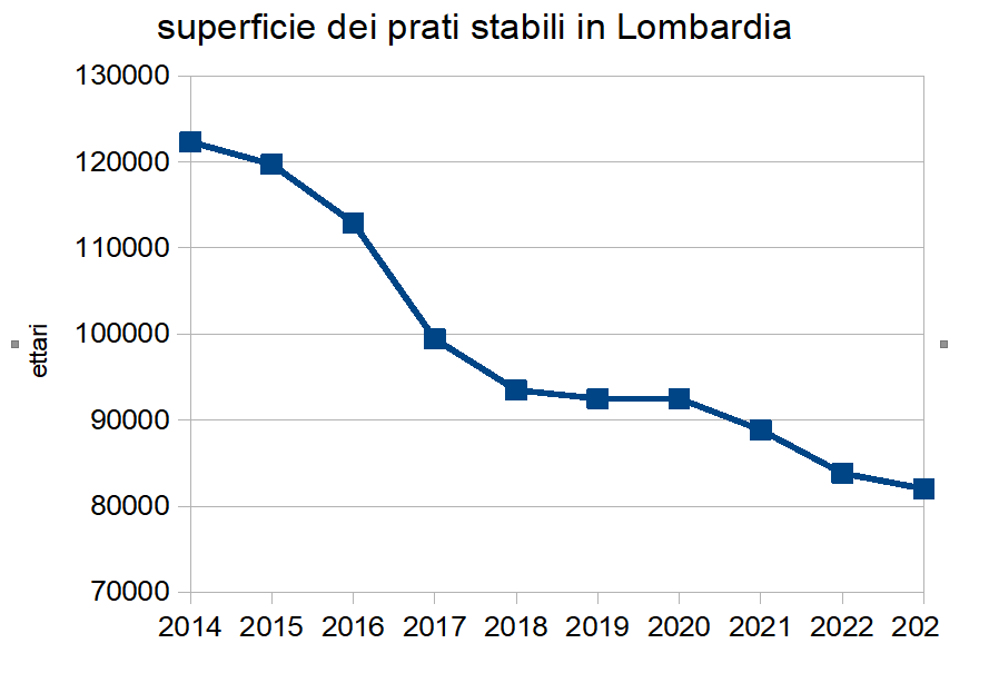 La Lombardia sta perdendo i suoi prati a velocità sconcertanti: i prati permanenti di pianura ormai costituiscono solo l’8% della superficie agricola regionale, e negli ultimi 10 anni sono scomparsi al ritmo di oltre 4000 ettari l’anno: in questo modo, rischiano di estinguersi entro i prossimi 20 anni! Una parte di questi prati viene sepolta dal cemento di strade e capannoni, ma la maggior parte lascia il posto a colture più intensive.
