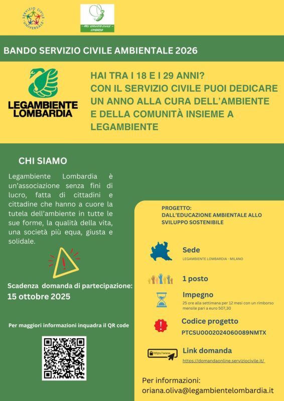 Vuoi metterti in gioco per difendere l’ambiente? Con questo progetto potrai diventare protagonista del cambiamento! Farai parte di un team giovane e dinamico. Imparerai tantissimo sulle sfide ambientali e su come affrontarle, conoscendo tante persone che condividono la tua stessa passione per un futuro sostenibile. Un’esperienza concreta per fare la differenza!