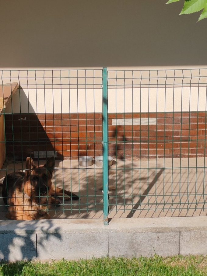 Il cane era assetato e non aveva acqua. Cercava l’unico punto parzialmente in ombra.